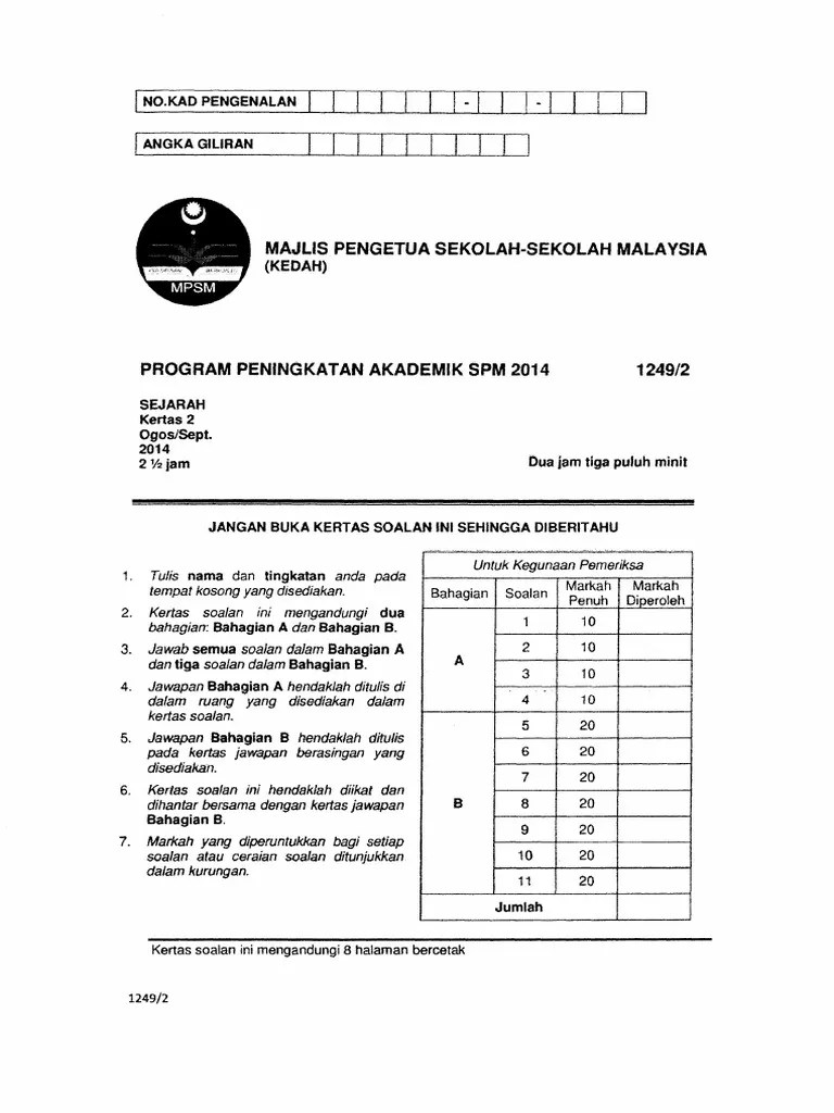 Sejarah Kertas 2 Spm 2019 : Sejarah Spm Ramalan 2021 Testnote Com